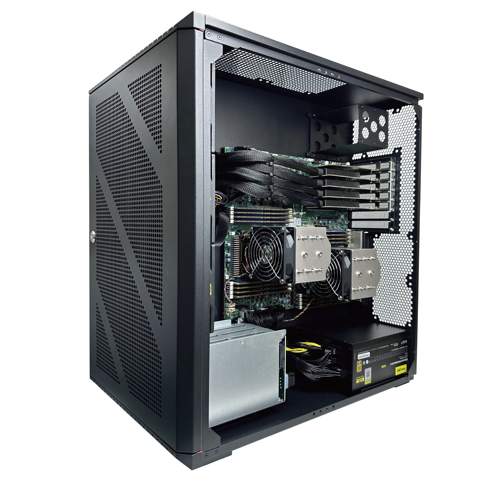 • 廣州天翱TA-WS04A工作站,定位是HPC及深度學(xué)習(xí)(AI)應(yīng)用平臺(tái)。支持4路3.5寬的顯卡機(jī)型,可有效解決當(dāng)下4090游戲卡的多卡安裝問(wèn)題,散熱問(wèn)題。供電方面采用兩個(gè)2000瓦特ATX電源同步供電,整機(jī)功耗可支持4000瓦特。另外整機(jī)采用靜音方式散熱,擺脫噪音困擾,非常適合學(xué)術(shù)研究辦公室跟實(shí)驗(yàn)室等環(huán)境使用。