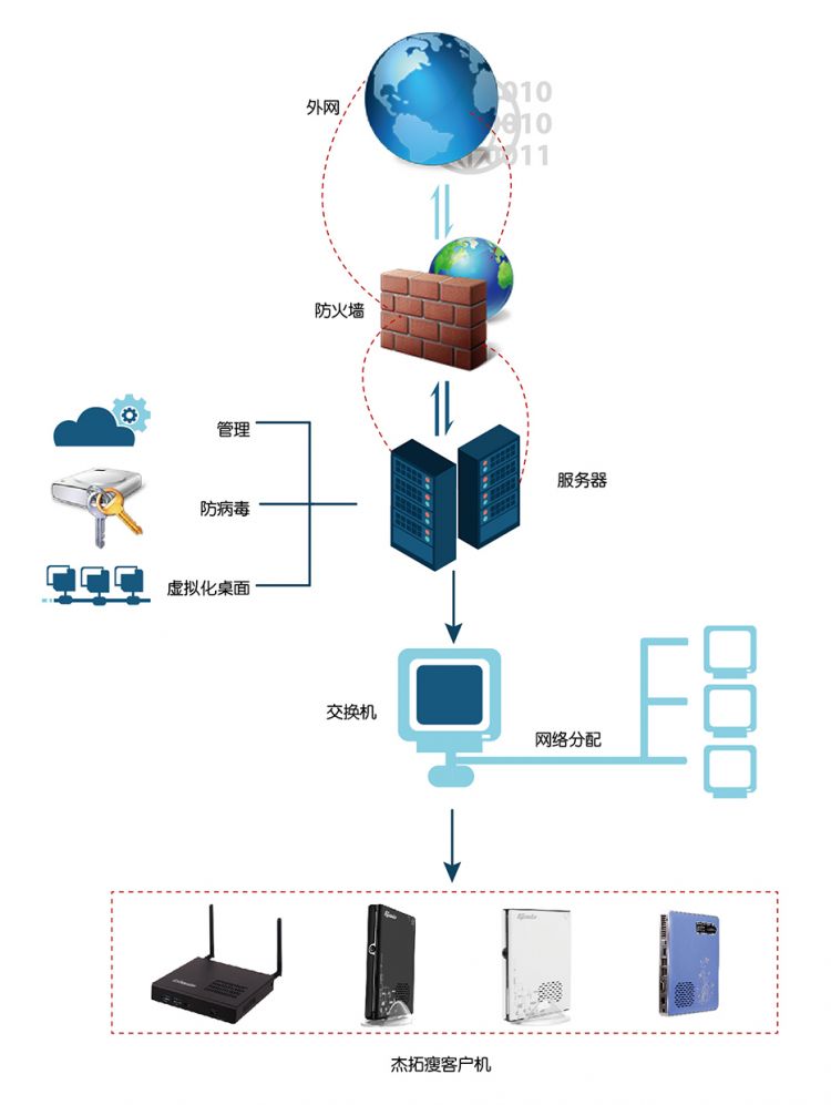 虛擬化應(yīng)用是指將應(yīng)用終端系統(tǒng)進(jìn)行虛擬化,以達(dá)到桌面使用的安全性、統(tǒng)一性,虛擬化可以通過專屬設(shè)備在任何時間、任意地點(diǎn)通過互聯(lián)網(wǎng)來實(shí)現(xiàn)統(tǒng)一管理獨(dú)立的應(yīng)用終端系統(tǒng)。
