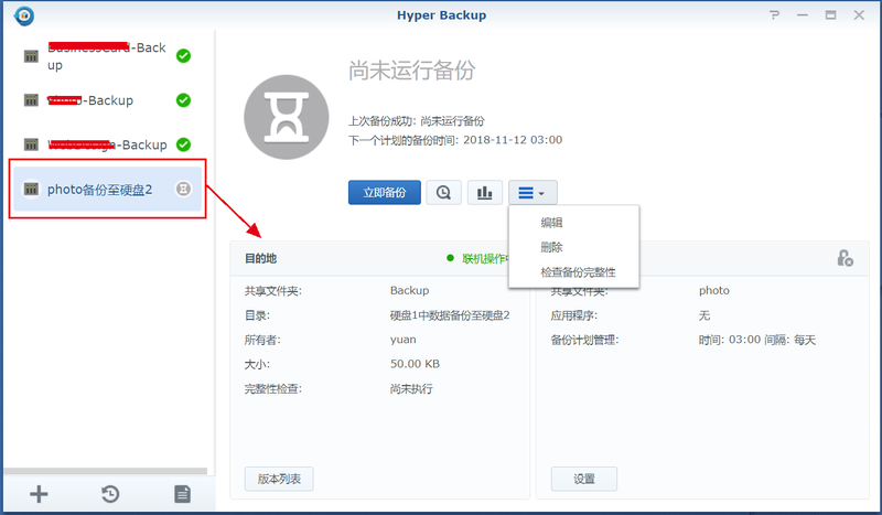 8、如此便完成了將硬盤1中的photo文件夾備份自硬盤2的設(shè)置,并且會定時備份,只要NAS在開機狀態(tài)中。