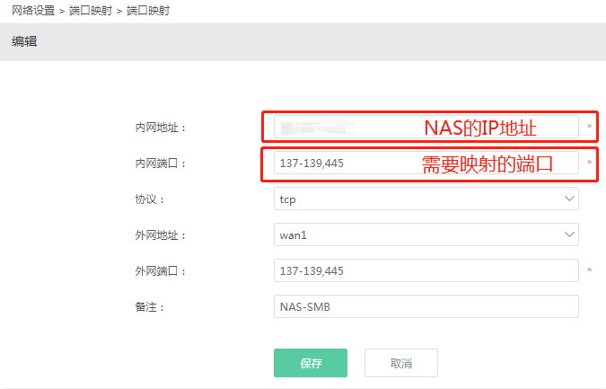 1、首先需要在路由器上做SMB相關端口的映射,將137-139和445端口映射到外網(wǎng)。