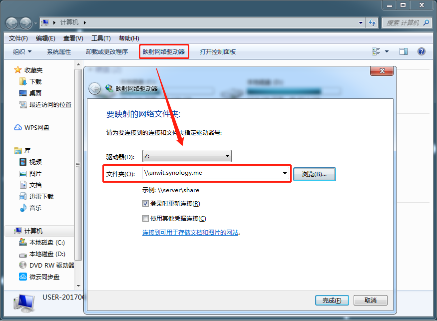 5、也可以通過映射網(wǎng)絡驅動器的方式。
